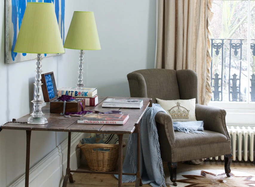This light, slightly desaturated blue paint has a hint of grey and can be understated, adding an element of balance to a space. The pale characteristic of this blue helps it to offer delicate combinations with light neutrals and whites.