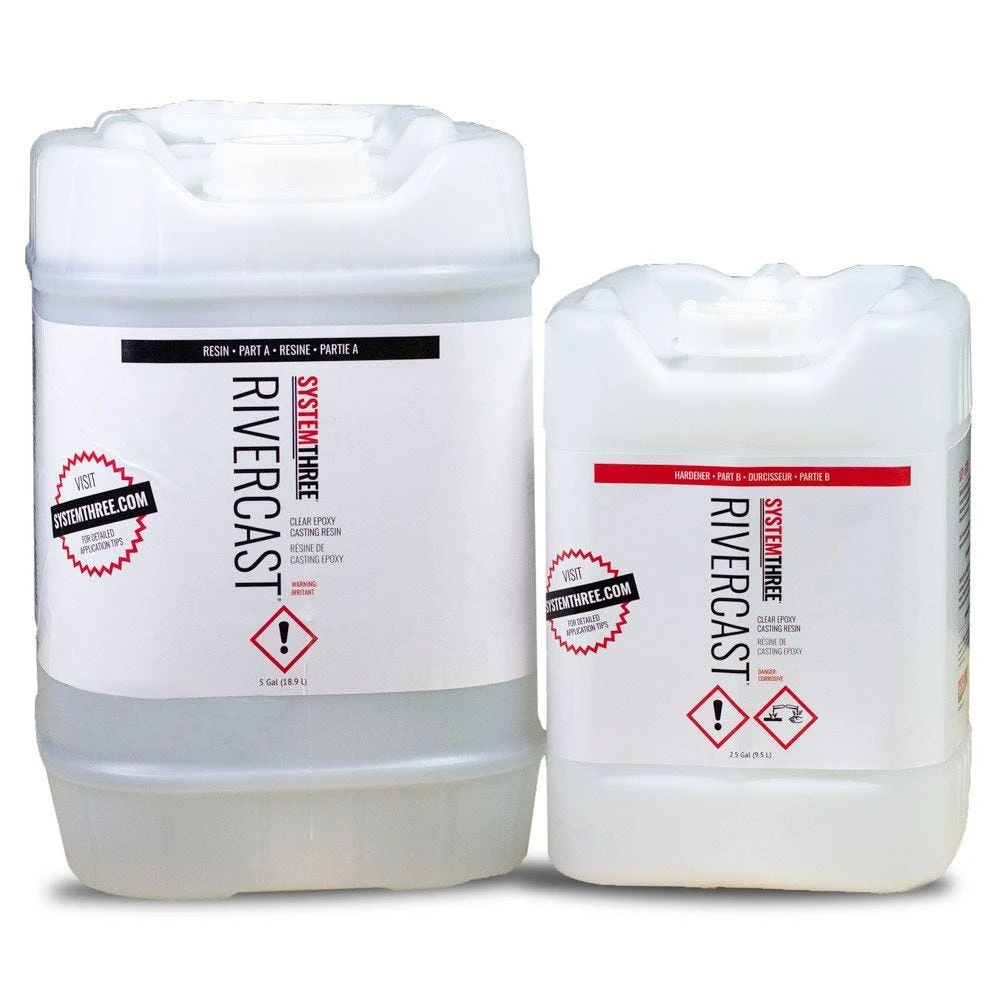 RiverCast is a clear epoxy system designed specifically for woodworking casting applications like deep pour river tables. It produces ultra-clear casts with minimal bubble entrapment. Because of its low reactivity and slow rate of cure, RiverCast can be poured into large inclusions up to 1-1/2” deep without creating excessive heat or discoloration. Because of its slow rate of cure, it’s not ideal for small knots and cracks—check out MirrorCast (sold separately) for smaller pours.